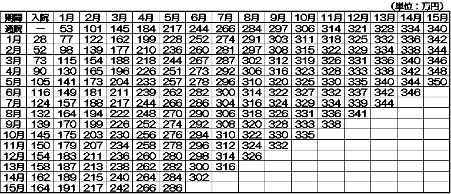 入院期間や通院期間に応じて、金額基準(相場)があり、次のような早見表で確認することができます。